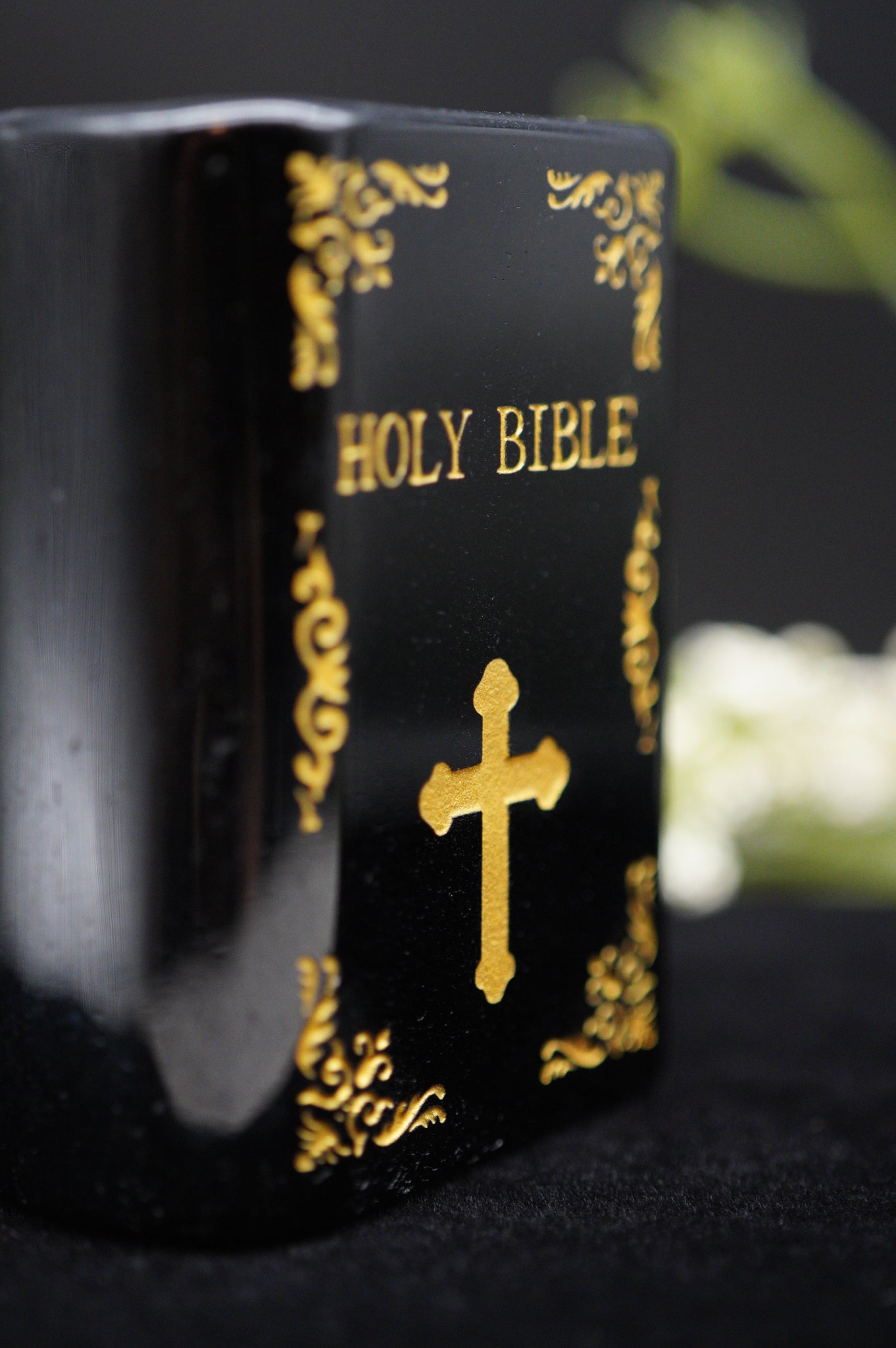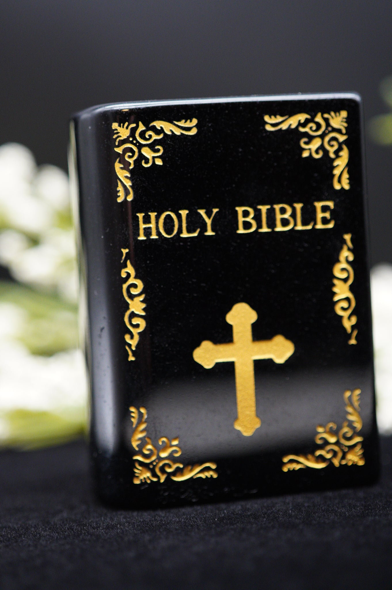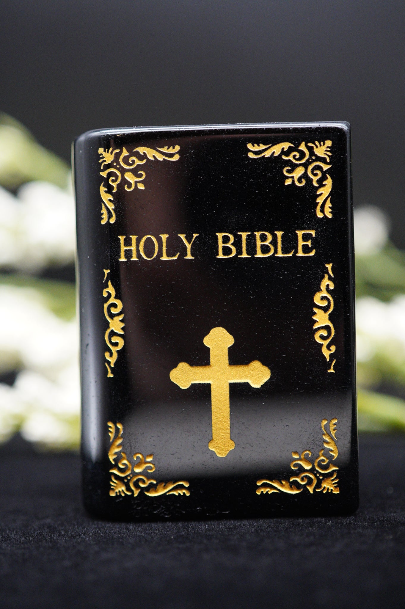 Crystal Holy Bible Carving Black Obsidian